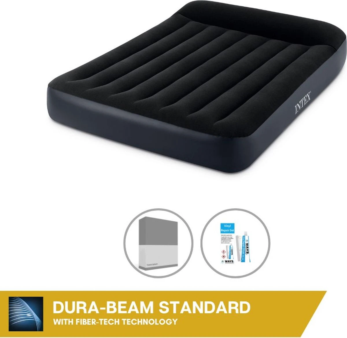 Intex Luchtbed – Twijfelaar – 137 X 191 X 25 Cm – Blauw – Met Ingebouwde Pomp, Hoeslaken Antraciet En Reparatieset