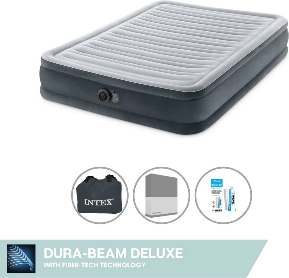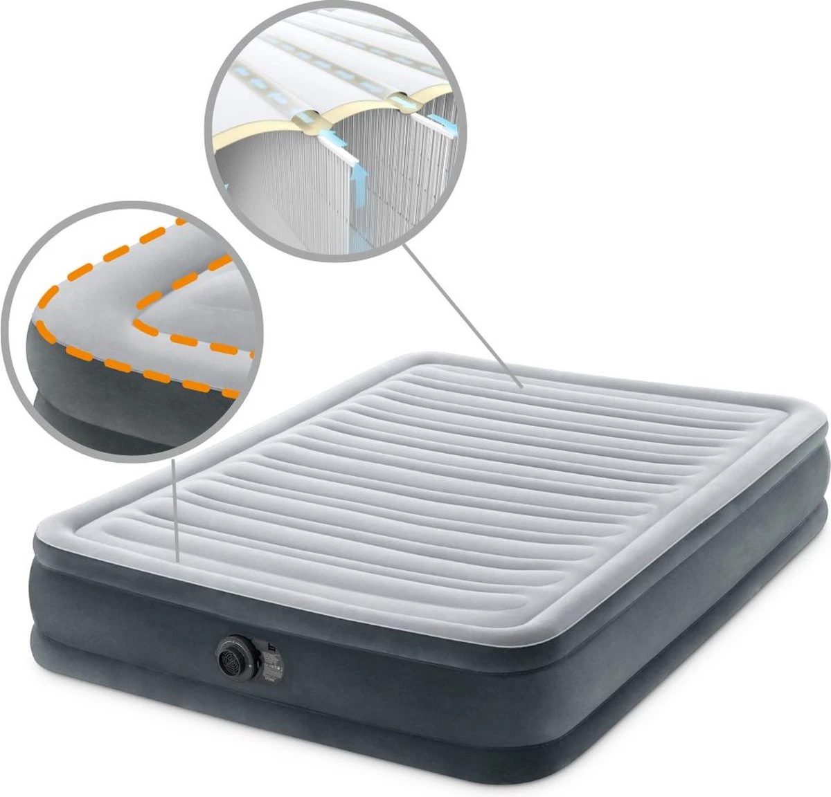 Intex Luchtbed – Twijfelaar – 137 X 191 X 33 Cm – Grijs – Met Ingebouwde Pomp, Hoeslaken Antraciet En Reparatieset